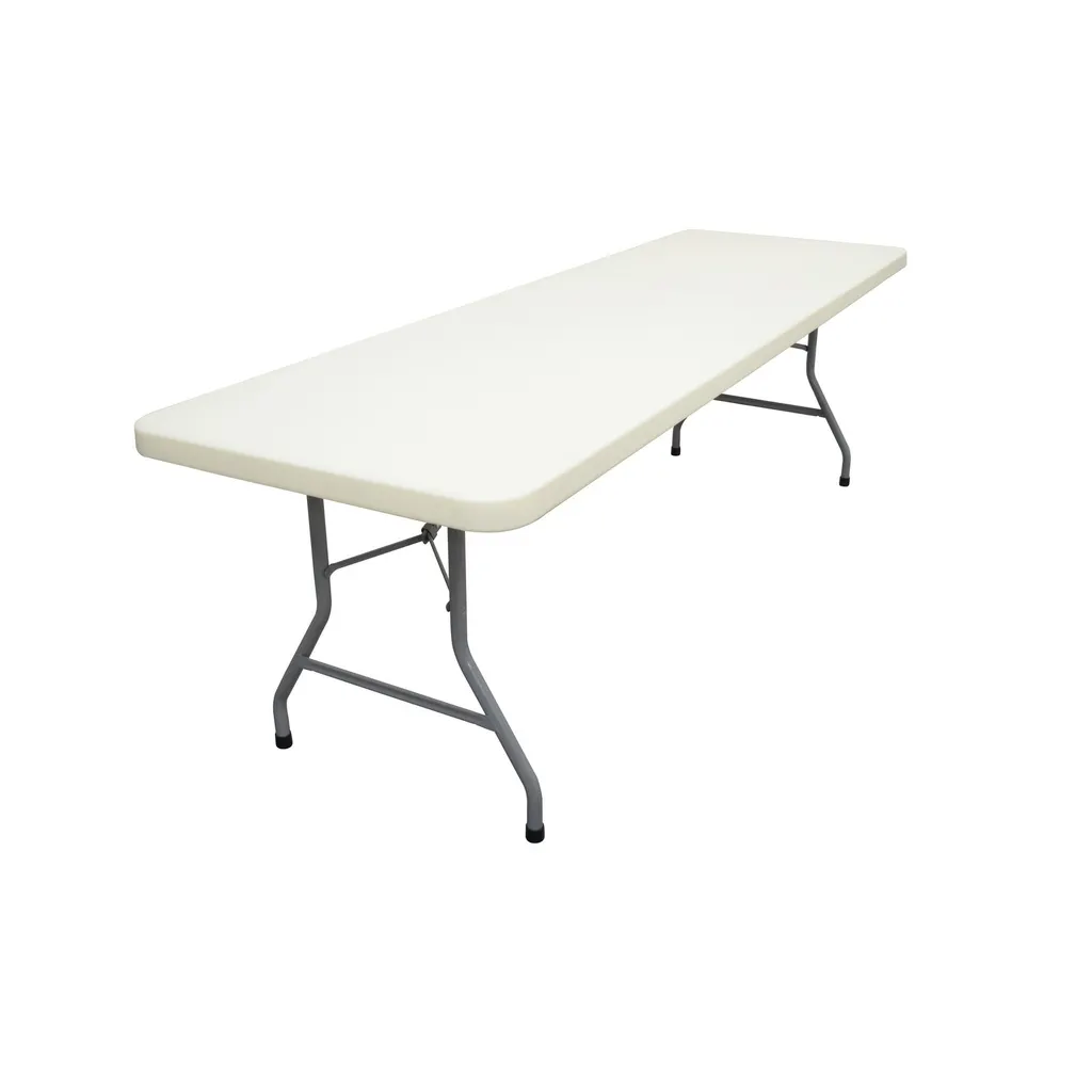 Our commercial-grade polyethylene folding tables are the standard for plastic folding tables. The 8' x 30'' tabletop is constructed from high-density polyethylene which make them a great, durable choice for both indoor and outdoor use. The smooth, round edges add to the comfort of the table making plastic folding tables a great choice for easy set up!